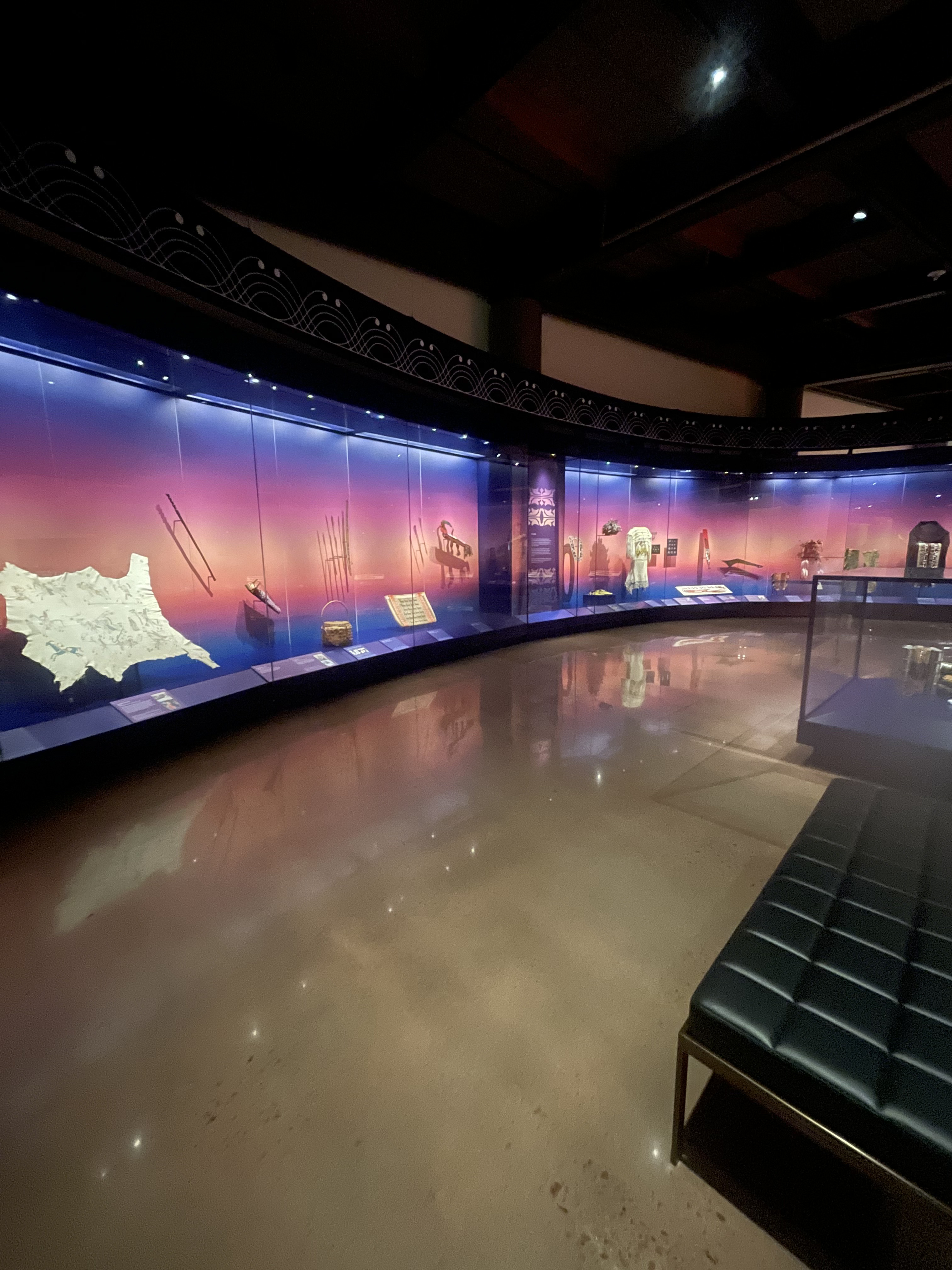 I also went to the First Americans Museum before the conference. WHAT A BEAUTIFUL PLACE. Curator heather ahtone welcomed me and walked me through some of the galleries, which are painted in bright red, sunrise, sunset, deep purple streaks touching orange bands. I won’t detail the whole museum, but I was struck by how interactive the galleries are: an opening theater room to listen to creation stories, a wall with diverse historical markers and tribally specific information, nooks with staged fireplaces where you can listen to more stories, an interactive virtual game area, wall text in language, pictures of families being reunited with objects that had been removed from their communities centuries before. It was really a moving experience for me.
