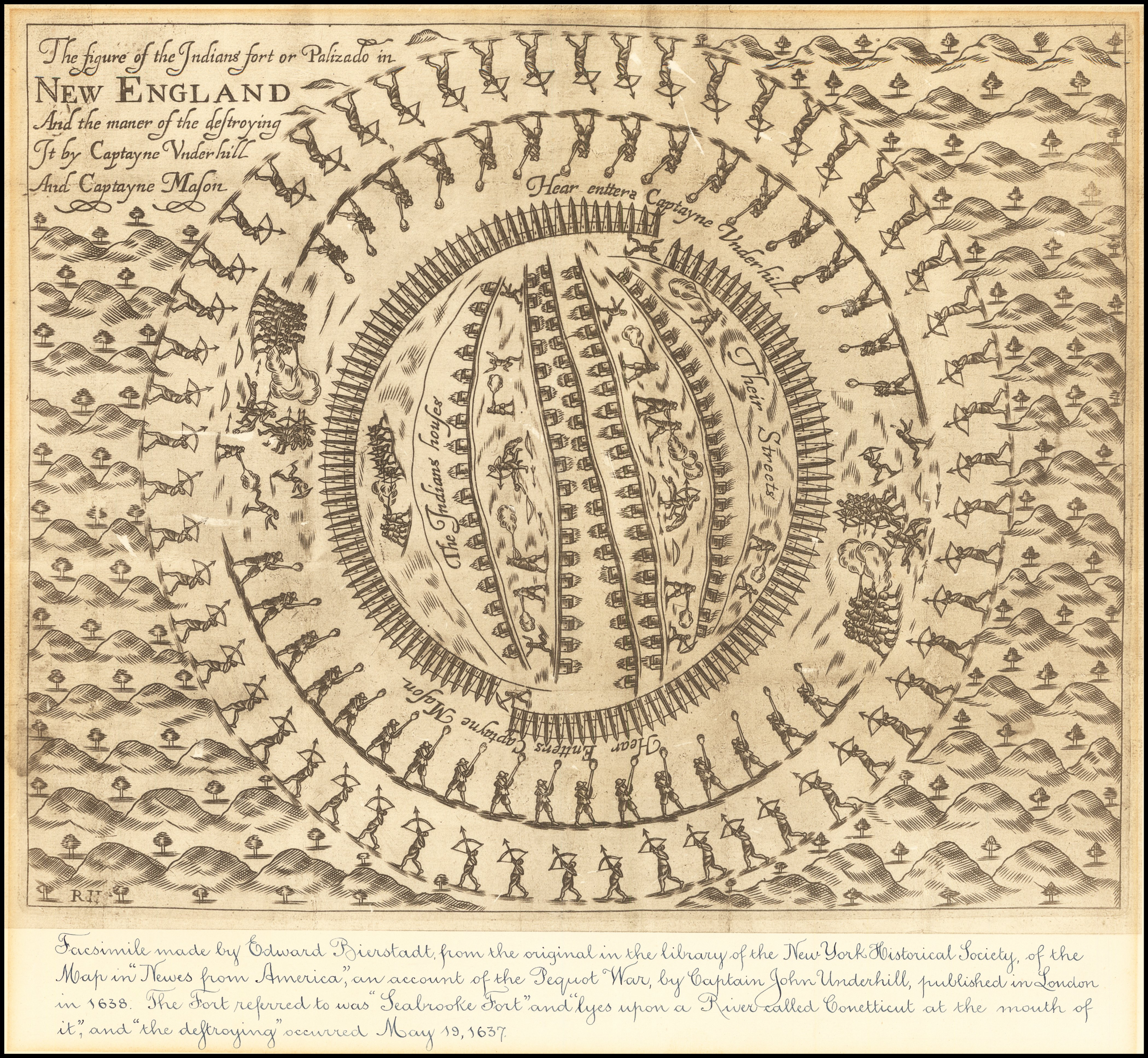 (Facsimile reproduction of the Pequot Massacre of 1637)