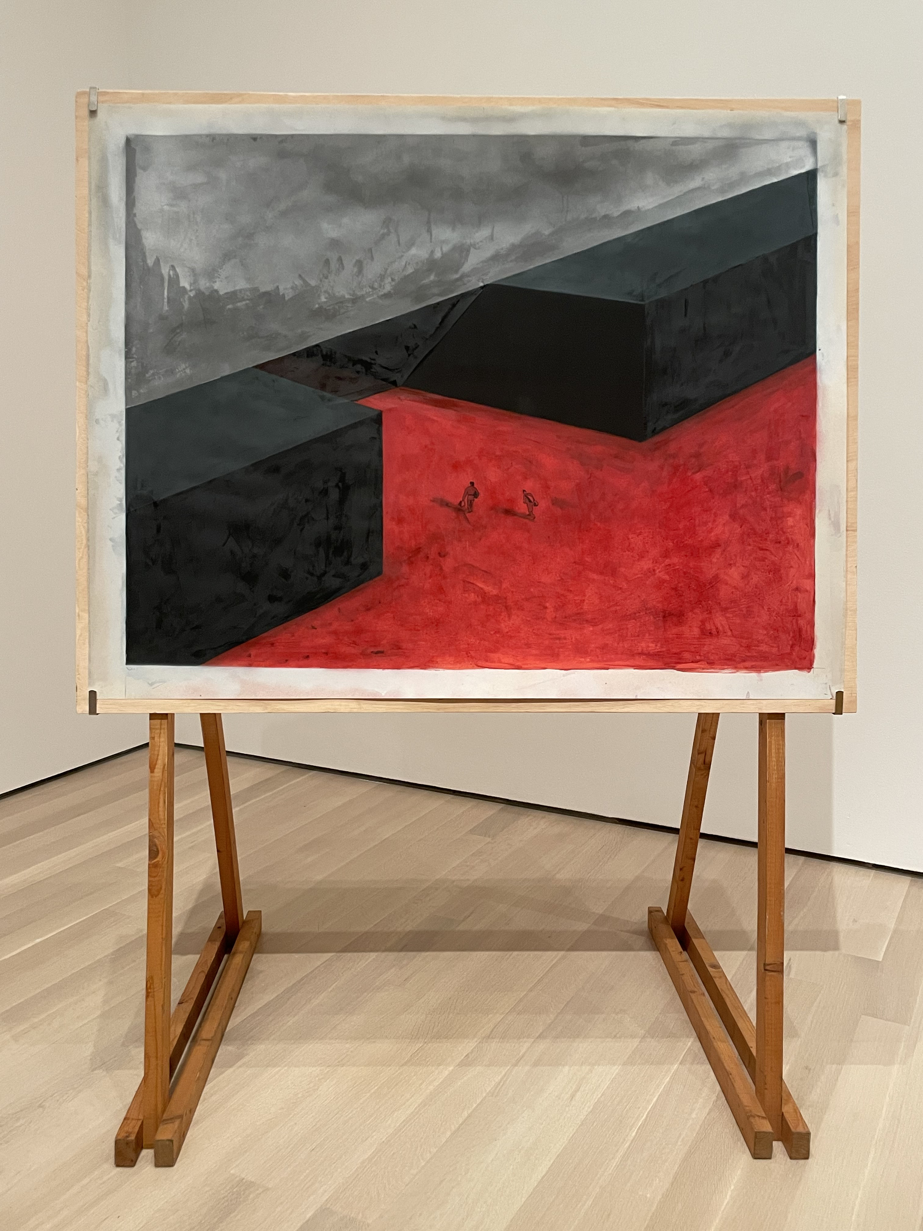 To the watermelons. The present overwhelms the past. And of course I am thinking about Palestine and not form or figuration. Not a modernist German who wanted people to see images again—because he was tired of abstraction, so he wanted to tell stories, to get people to see narrative rather than an overwhelming string of signs without whispers. But now the images are too much, too blunt, too devastating, devastating is not big enough, not red enough. The blood is black. The blood is not black.