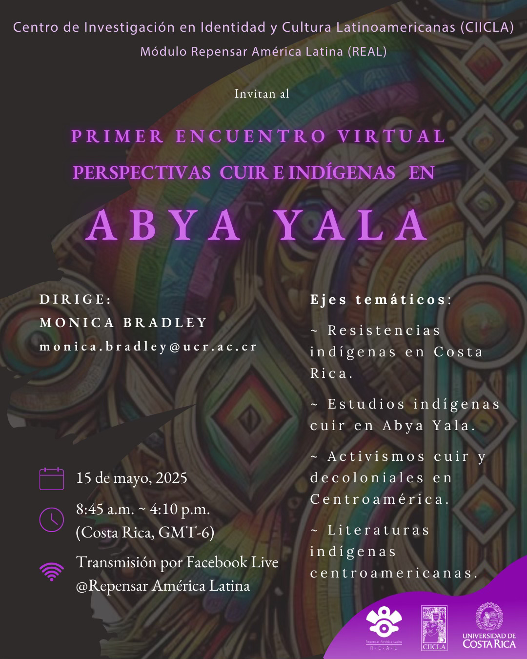 - Keynote address for the Primer encuentro virtual: Perspectivas cuir e indígenas en Abya Yala [First Virtual Meeting: Queer and Indigenous Perspectives in Abya Yala]. The conference will be in Spanish on part of my book about why Indigenous bodies are always naked, what I call Indigipornography [Indiopornografía]. The conference will be online, virtual, all day May 15, 2025, and my talk will be up first, at 9am Costa Rica time (GMT -6), which is 11am Eastern/10am Central Turtle Island time. If you want to join, it looks like you may have to do it by Facebook (?!) but you can also email Monica Bradley [monica.bradley@ucr.ac.cr] who is organizing.